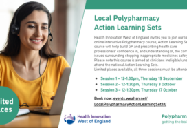 Unlock the full potential of your prescribing expertise with the Health Innovation West of England’s Local Polypharmacy Action Learning Set (ALS) series! We’re proud to enhance the National Polypharmacy Programme, tailoring it with our innovative, locally developed sessions designed for every prescriber out there. Benefit from our unique blend of national insights and accessible, specialised training, all packed into three engaging 90-minute lunchtime sessions. Whether you’re looking to refine your skills, stay ahead of the curve in clinical practices, or simply connect with like-minded professionals, our ALS series is your gateway to becoming a more effective prescriber. Don’t miss this opportunity to elevate your practice – spots are filling fast!