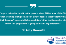 In this blog, Rachel Gibbons, Programme Manager, speaks to GP Dr Amy Howarth whose practice in Gloucestershire is participating in the Child-Parent Screening Service Programme. The Child-Parent Screening Programme is currently being piloted, initially for 24 months, across seven AHSN regions, including in the West of England. The programme aims to identify families with Familial…