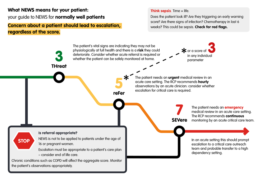 3-Threat, 5-Refer, 7-Severe are three levels on the NEWS score, which we use locally to prompt actions for escalation and provide a common language across all services.