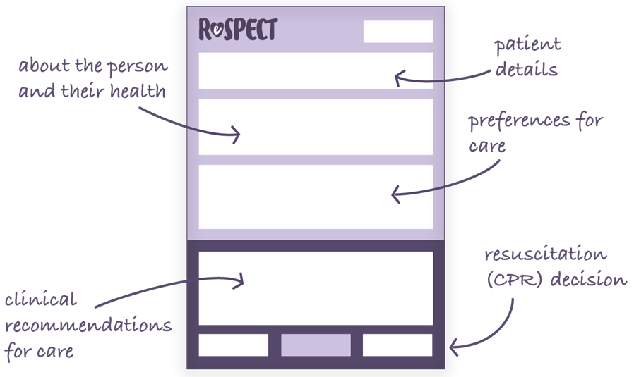 The process is that trained staff guide selected patients through an extended conversation, often taking place over several contacts to allow families and carers to be involved. The process results in a completed ReSPECT form that details the person’s wishes for their care, along with appropriate clinical recommendations. The ReSPECT form is then held in hard copy form by the patient, and should be made available for paramedics and clinicians to access in the event of an emergency. A ReSPECT form may also include a decision on resuscitation, which may record the patients’ preference for or against resuscitation or CPR (Cardio Pulmonary Resuscitation).