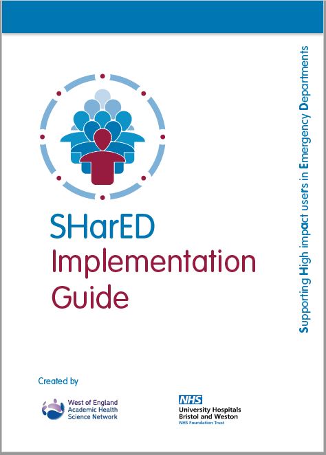 The SHarED Implementation Guide is designed to help local Emergency Department teams support high impact users. The complete guide is best for gaining an understanding of the project rather than using as working documents. For working documents see below.